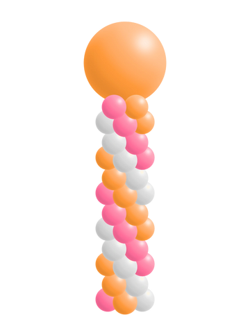 A classic party favorite, our spiral balloon columns feature a colorful, twisting design topped with your choice of a statement balloon—either a 36" latex or a themed mylar balloon. Customize your colors to match your event for the perfect festive touch at entrances, stages, or photo areas.
